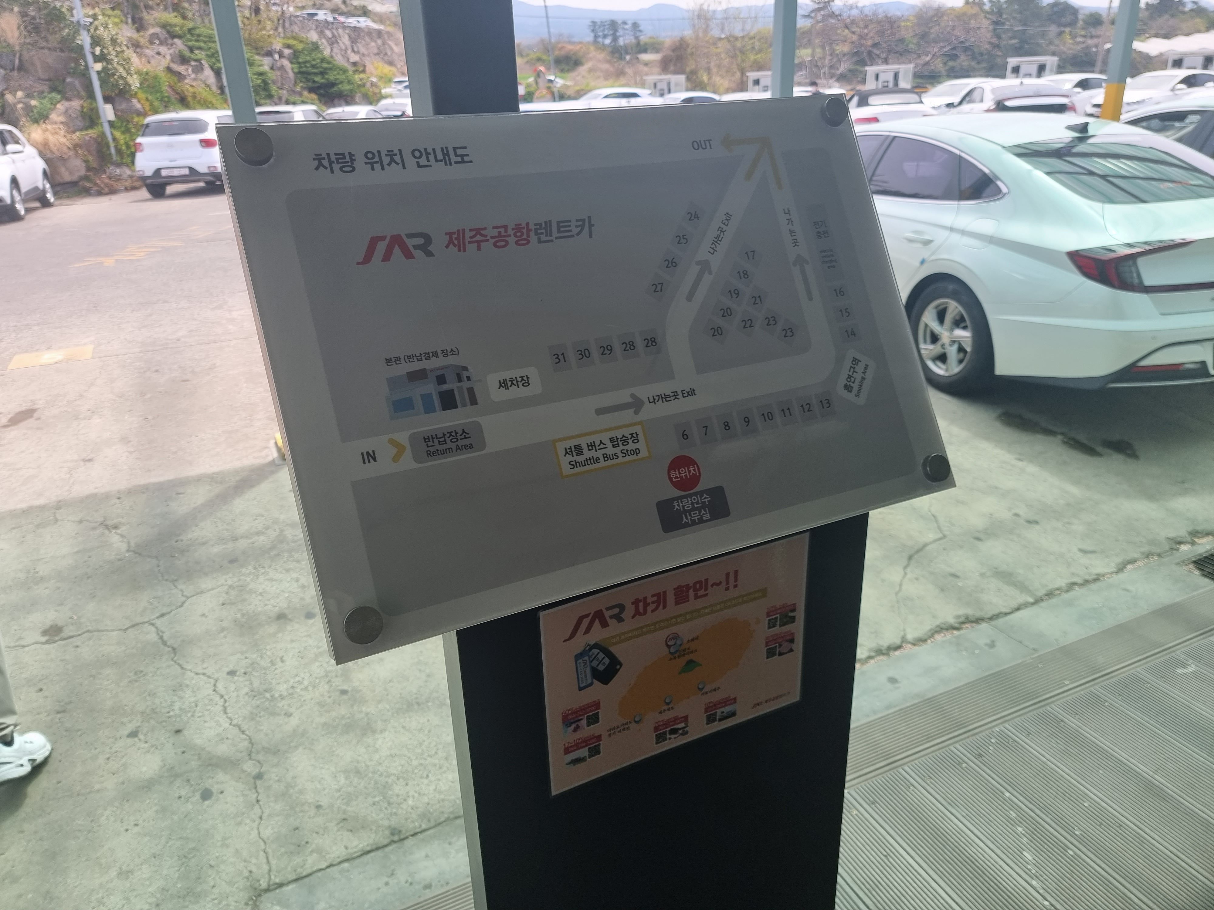 차키를 받아 밖으로 나오면 차량 위치 안내도가 있는데, 직원분께서 우리가 이용할 차는 24번에 있다고 말씀해주셨으니 안내도를 보고 차를 찾아갔다.