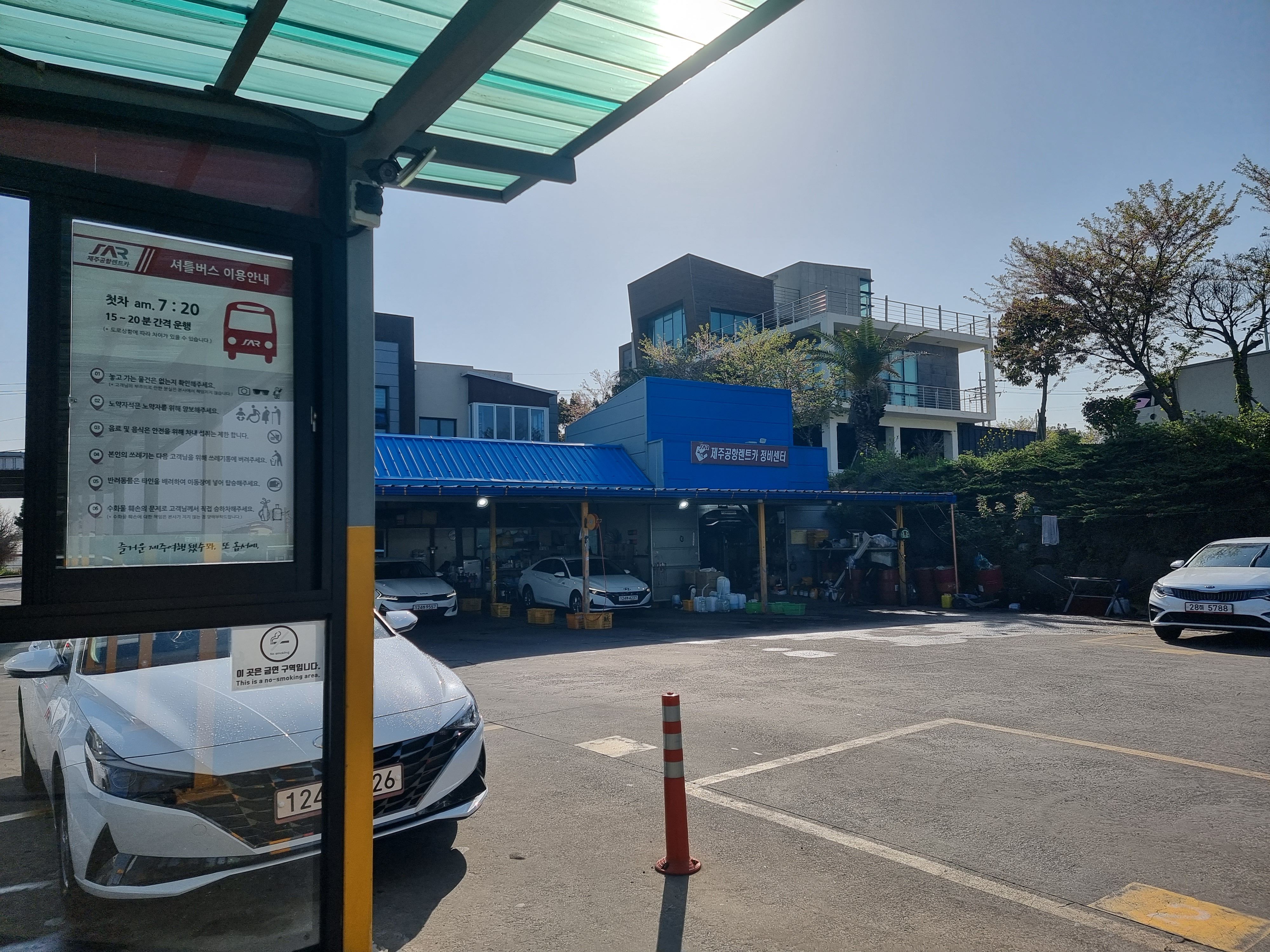 제주공항렌트카 본사에 도착하면 직원분의 안내에 따라 가지고 있던 짐들을 다 꺼낸 후 셔틀버스 타는 장소로 이동하면 된다.