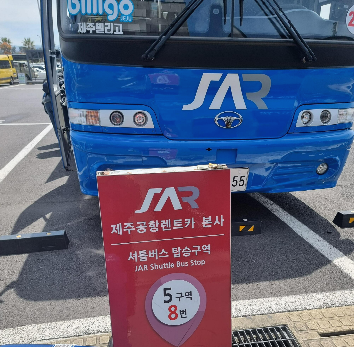 제주공항렌트카 jar / 제주공항렌트카 본사의 셔틀버스 타는 곳은 위 사진에 나와있듯이 5번 구역 8번이다. 제주공항렌트카의 셔틀버스는 파란버스와 빨간버스가 있는데 둘 다 대형버스라서 쾌적하게 이용할 수 있다. (저번에 이용했던 다른 업체의 셔틀버스는 자그마한 마을버스인데, 타는 사람들은 가득해서 겨울인데 더웠음...)