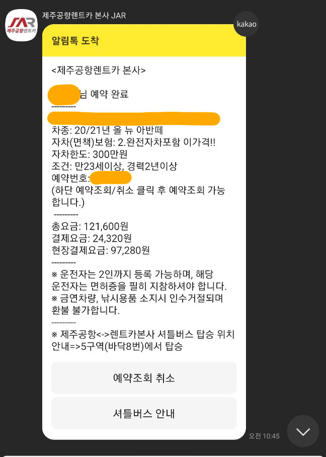 그래서 나는 이번 가족여행에서 다시 제주공항렌트카를 재이용했다. :D / (절대 광고아님! 내돈내산! 121,600원 결제 했숨다!)