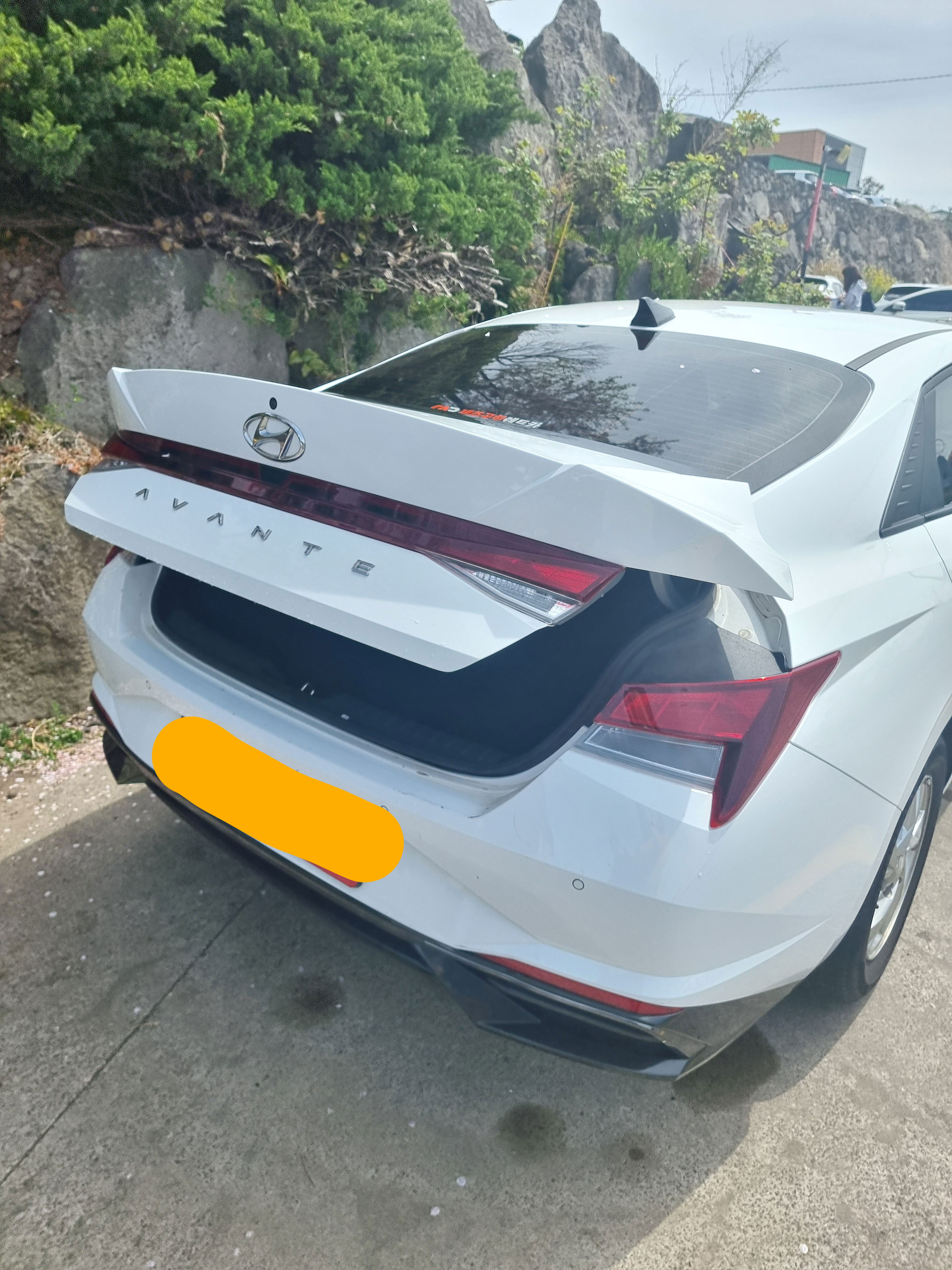 24번 구역으로 가니, 트렁크가 살짝 열린 빤딱 광나는 흰색 올 뉴 아반떼가 우리를 반겨주었다. 트렁크 살짝 열려있는 게 왜 이리 귀엽지.ㅋㅋㅋ 환영해주는 느낌?!이 들어서 좋았다.