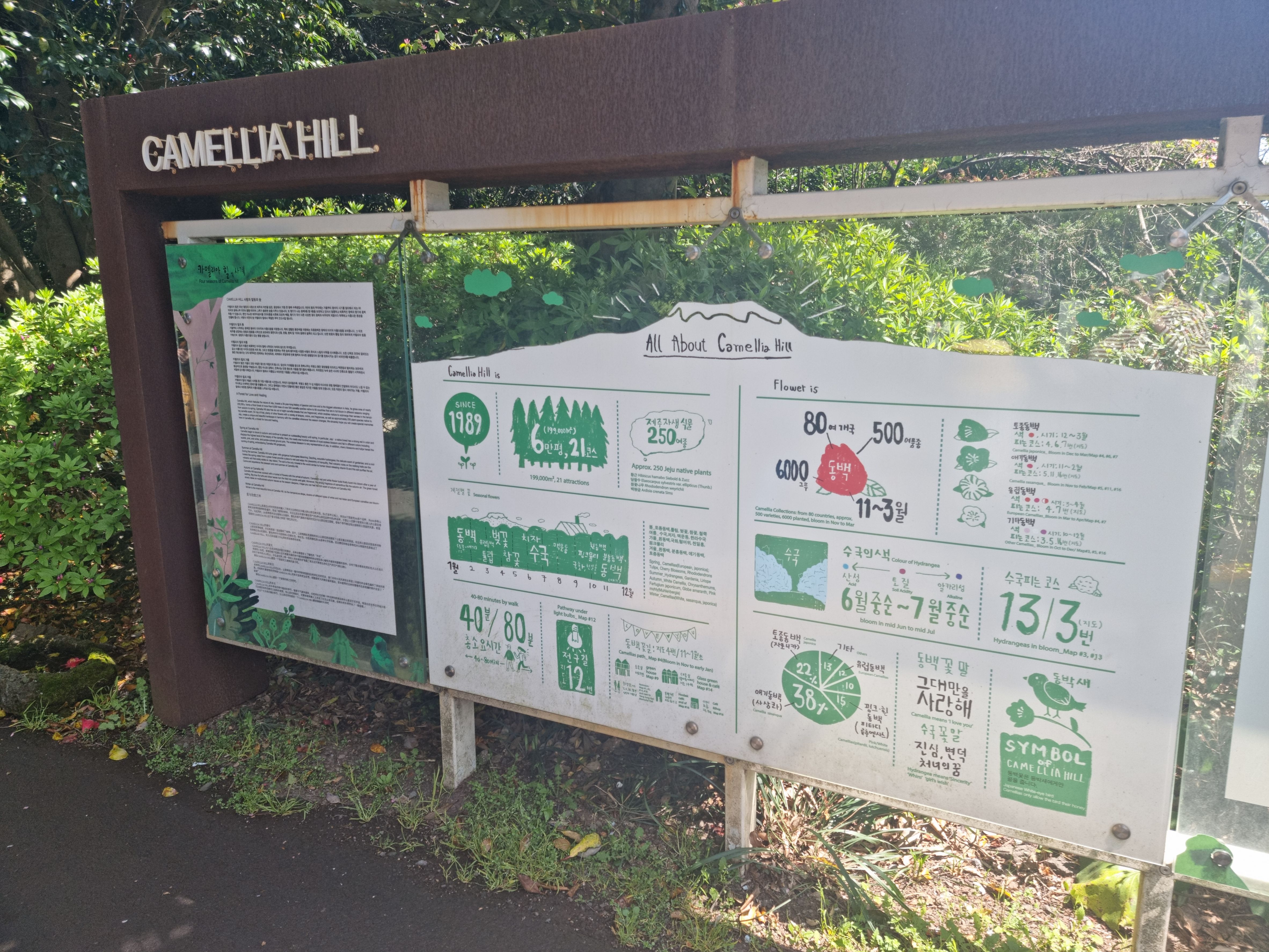 입장권 검사 후 카멜리아힐에 입장하면 바로 옆에 있는, 카멜리아에 대한 전반적인 설명이 적혀있는 안내판.